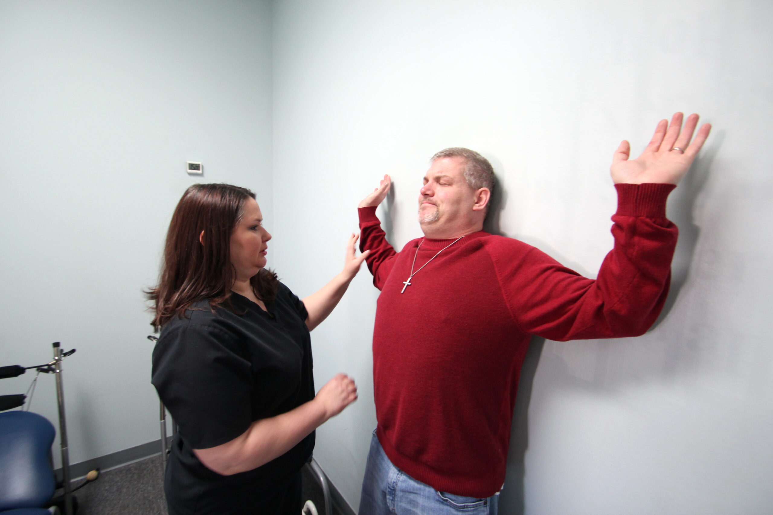 Patients often train with our physical therapist in our Charlotte clinic working on exercises that they can do at home, to help them function more effectively.
